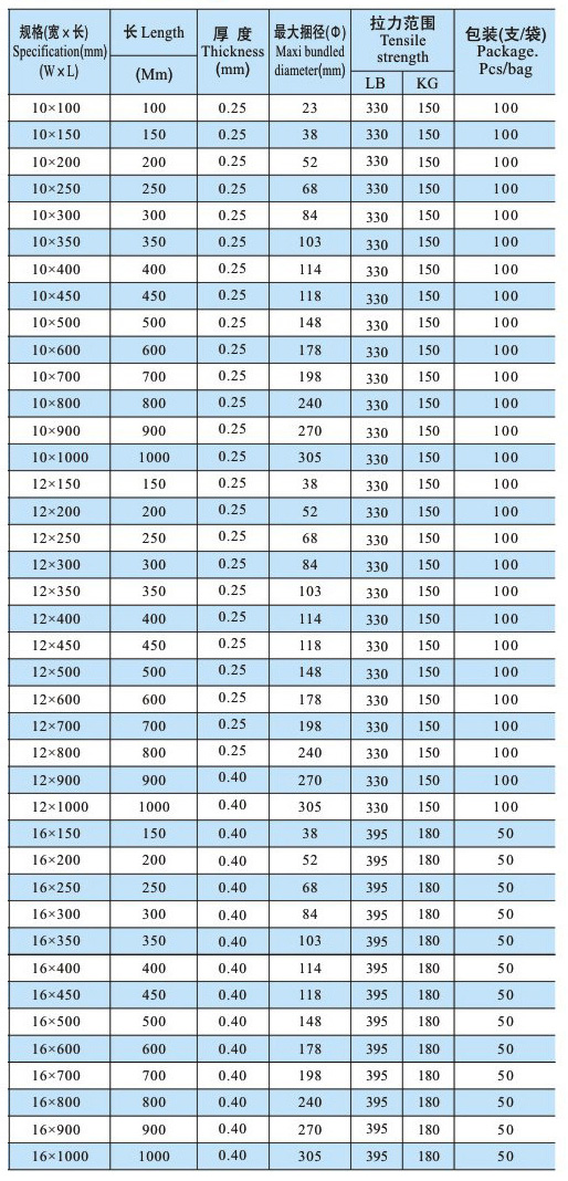 二、304不銹鋼扎帶技術(shù)參數(shù):
