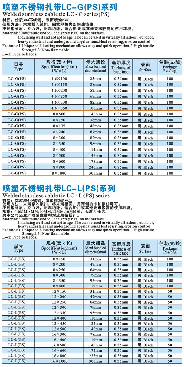 噴塑不銹鋼扎帶是在扎帶表面增加PVC涂層已提高抗腐蝕性能,可以適應海洋等環(huán)境。